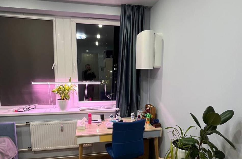 Заказчики выбрали бризер ATMEEX AIRNANNY A7 с тонкой очисткой, чтобы поддерживать свежесть и чистоту воздуха.