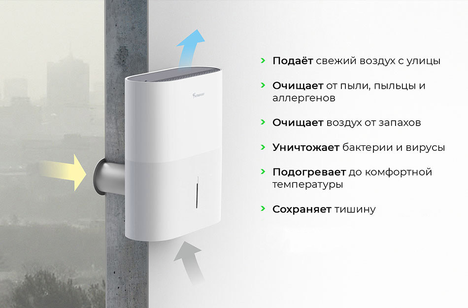 В разделе, посвящённом профилактике гриппа и ОРВИ в школе, мы уже говорили о том, что эффективно проветривать и поддерживать здоровый микроклимат помогают бризеры — устройства компактной приточной вентиляции. Дома также удобно использовать такие приборы: они занимают мало места, для комнаты достаточно одного устройства.