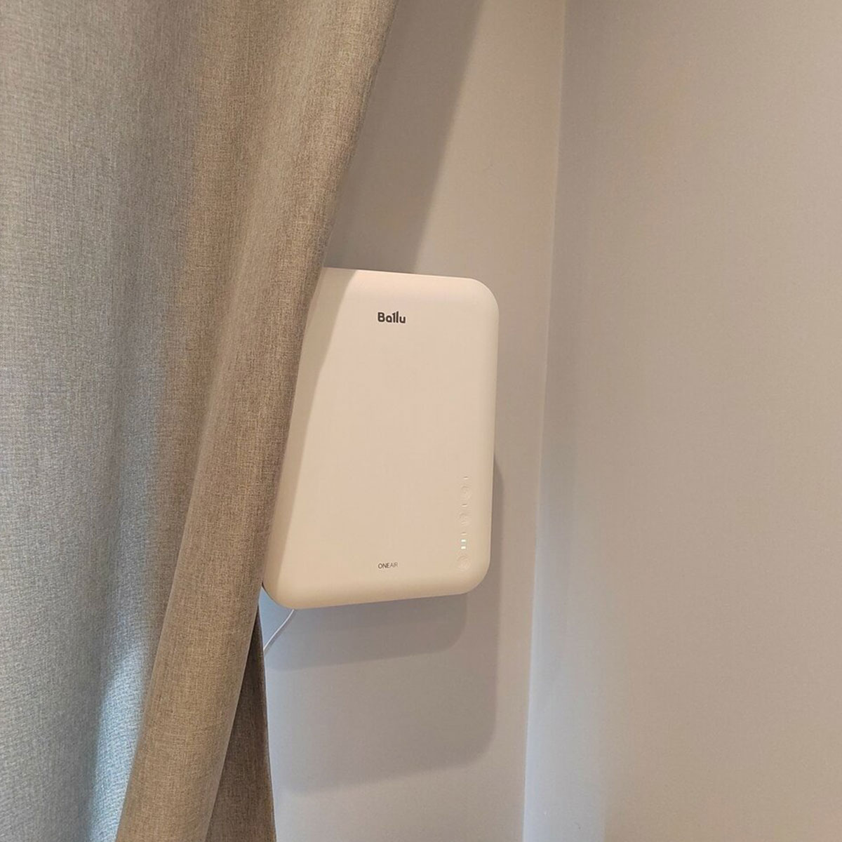 Ballu ONEAIR ASP-80 выступает от стены на 14 см, это чуть толще стандартного радиатора отопления. Можно утопить в стеновую нишу глубиной до 7 см.