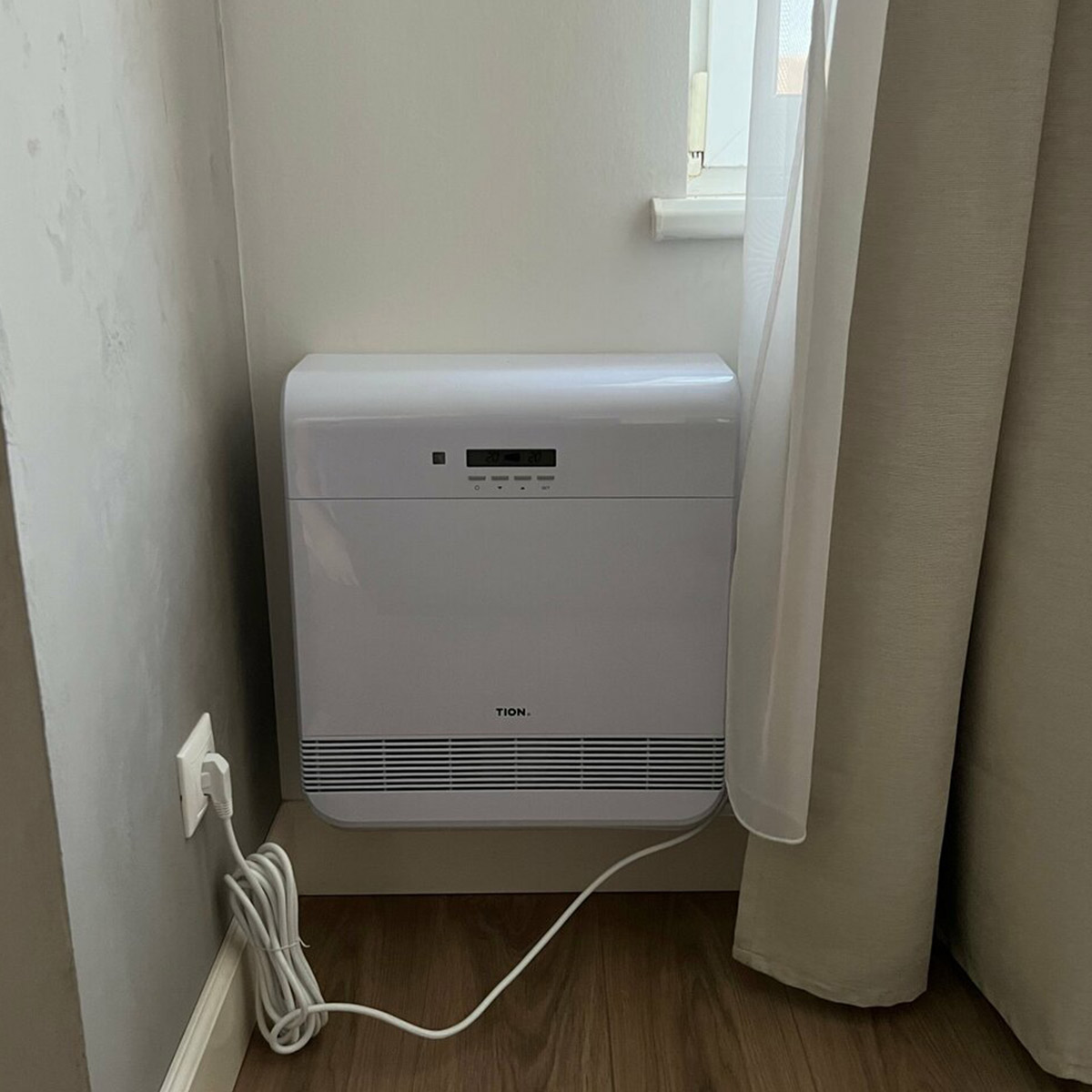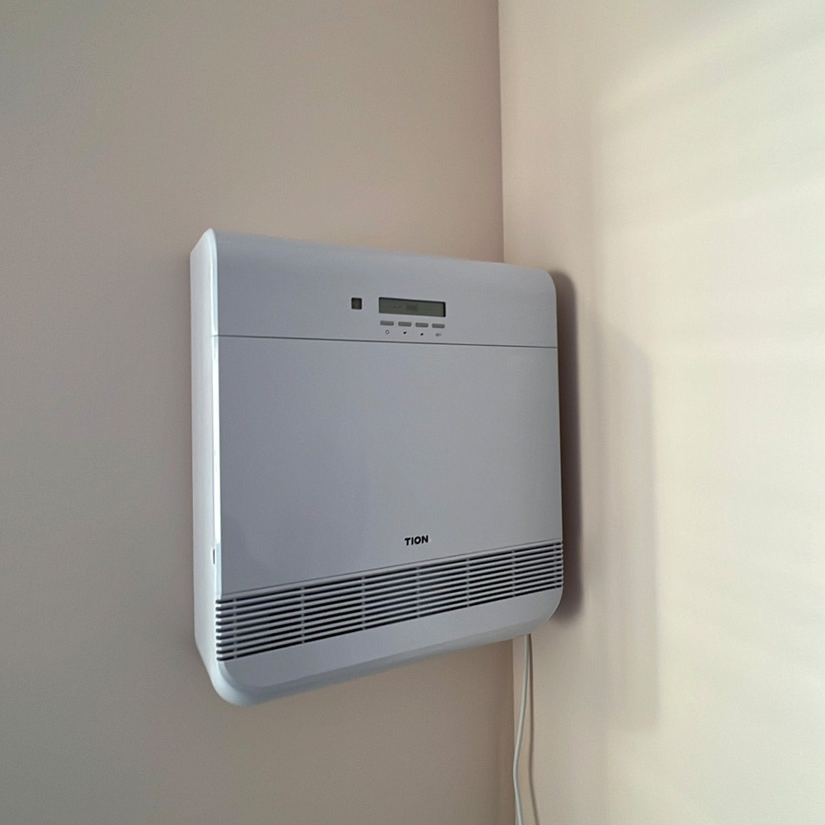 Установили ТИОН О2. Выбрал его из-за цены и фронтального выхода воздуха. Студия 19кв.м. Бризер решил ставить из-за плохой вентиляции помещения и из-за шума за окном.
